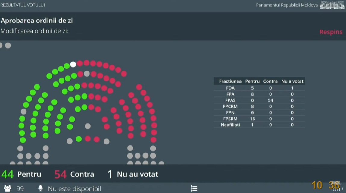Inițiativa a întrunit 44 de voturi. Deputații PAS nu au susținut-o.
