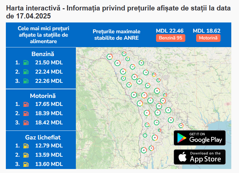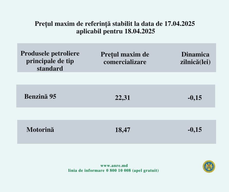 Așadar, conform prețurilor afișate de ANRE, motorina și benzina se ieftinește cu 15 bani.
