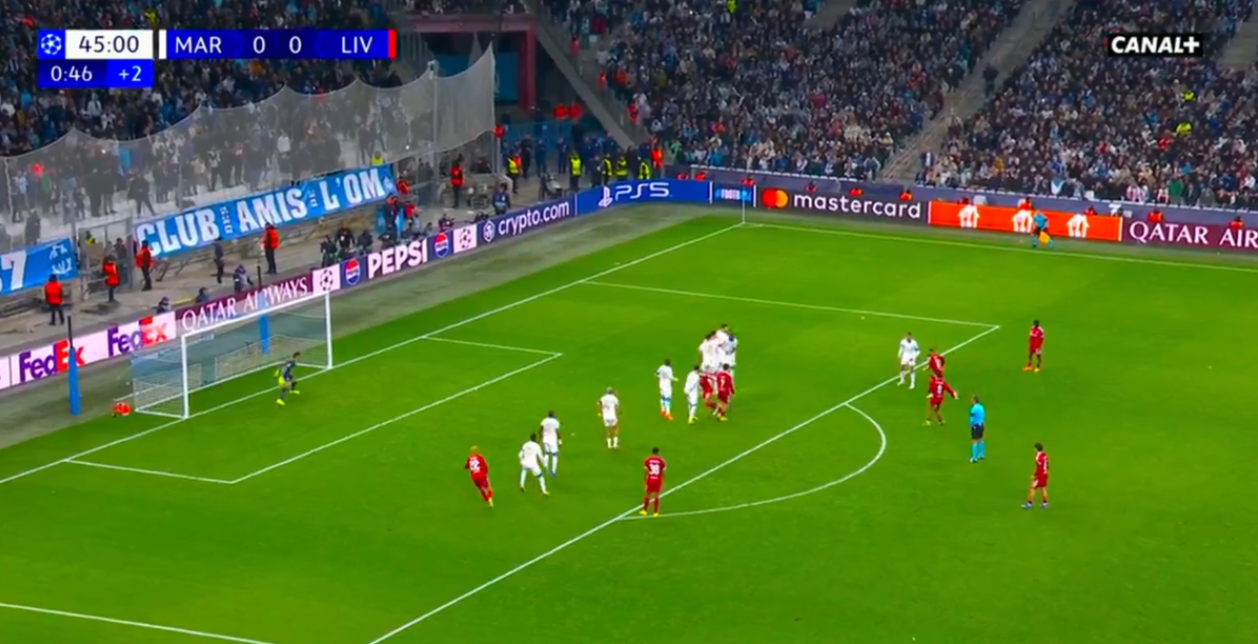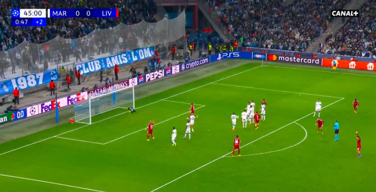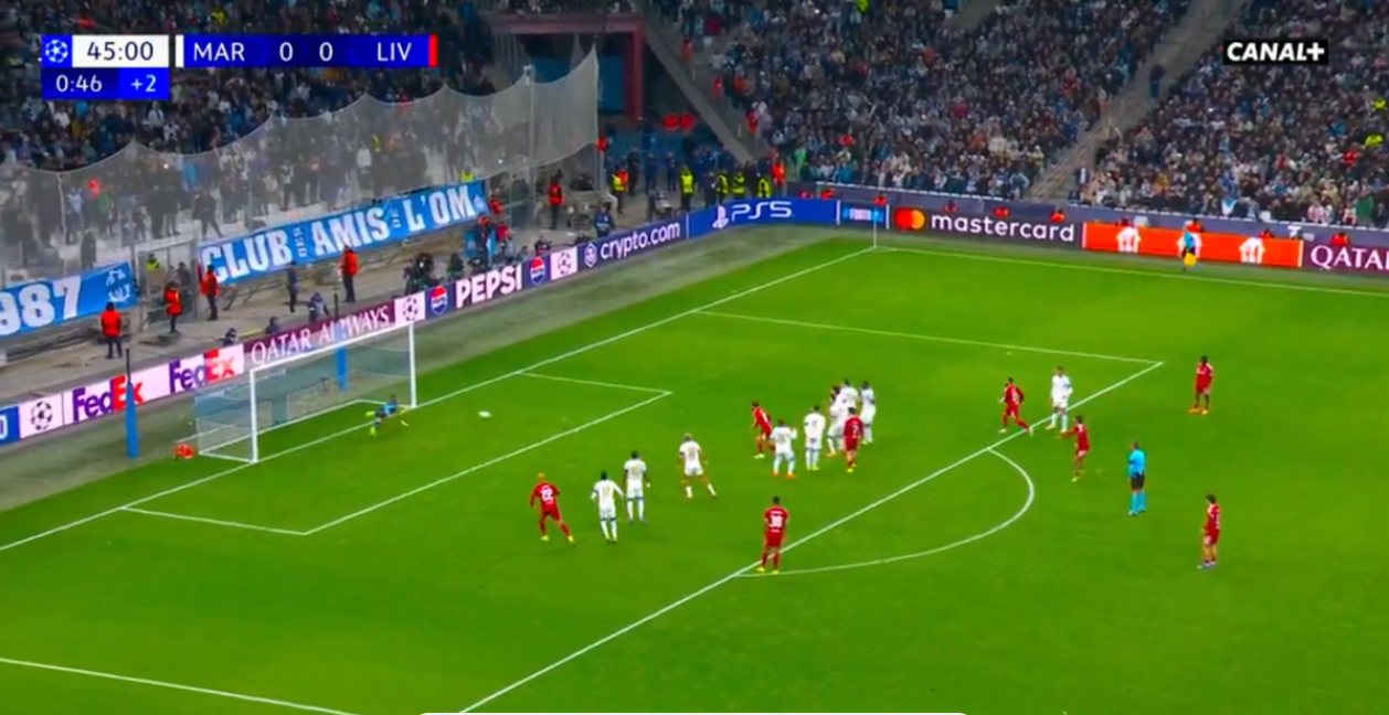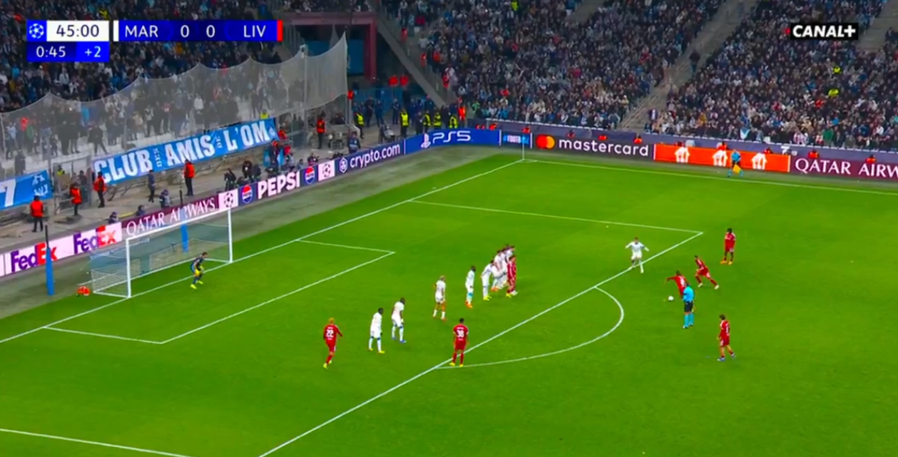 Szoboszlai a observat acest lucru și a trimis un șut pe jos. În momentul în care jucătorii lui Marseille au sărit, mingea a trecut pe sub ghetele lor și s-a dus în plasă. Portarul Rulli a fost păcălit de maghiar și nu a putut interveni. Un astfel de gol se vede destul de rar în fotbal.