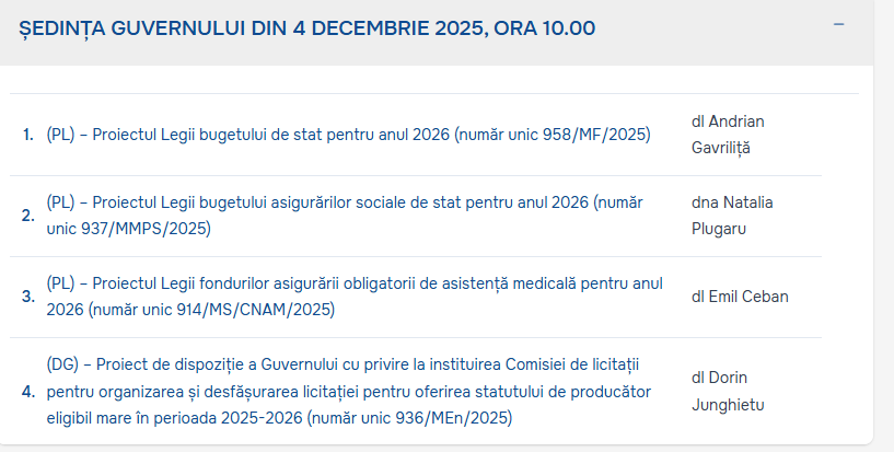 Proiectul Legii bugetului asigurărilor sociale de stat pe anul 2026 a fost aprobat.