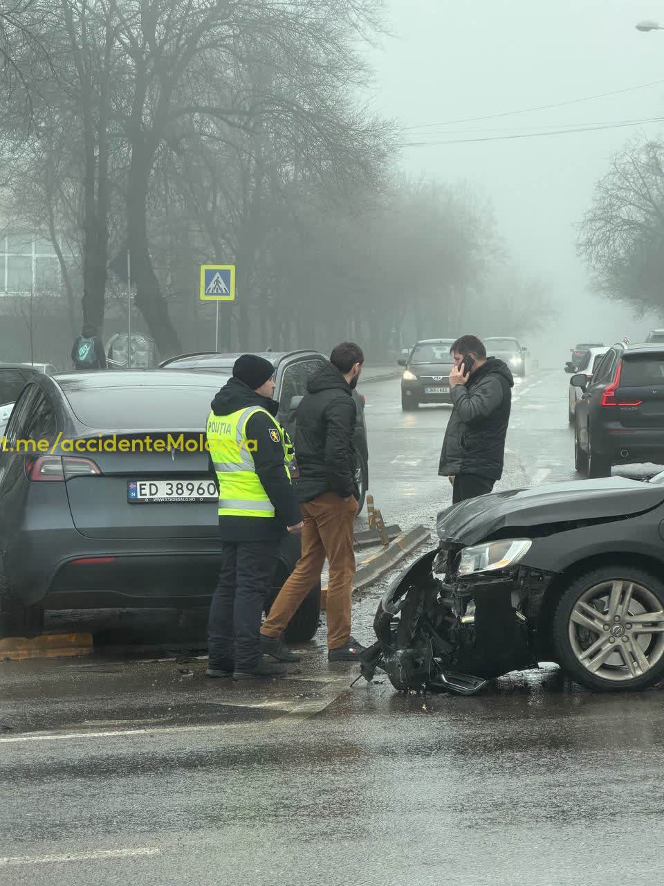 „Astăzi, în jurul orei 13:15 în mun. Chișinău, str. B. Voievod / Florilor s-a produs un accident rutier. Din cercetările preliminare s-a stabilit că în accident este implicat un automobil de marca Tesla, care s-a tamponat cu un Volvo, în circumstanțe care urmează a fi stabilite. Persoane traumatizate nu au fost înregistrate. Alte circumstanțe sunt în curs de stabilire”, a comunicat Poliția, pentru UNIMEDIA.