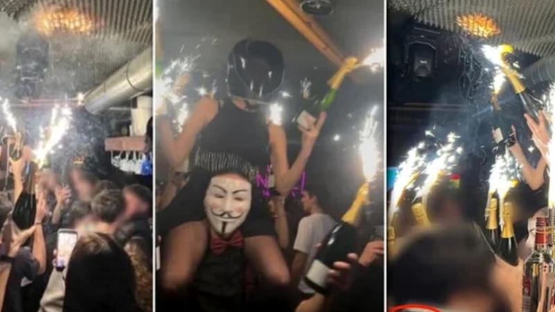 Fotografiile apărute pe rețelele sociale surprind momentul în care femeia misterioasă cu cască neagră este ridicată pe umerii unei alte persoane, ținând artificiile aproape de tavan, ceea ce ar fi declanșat incendiul, potrivit publicației Fakt.