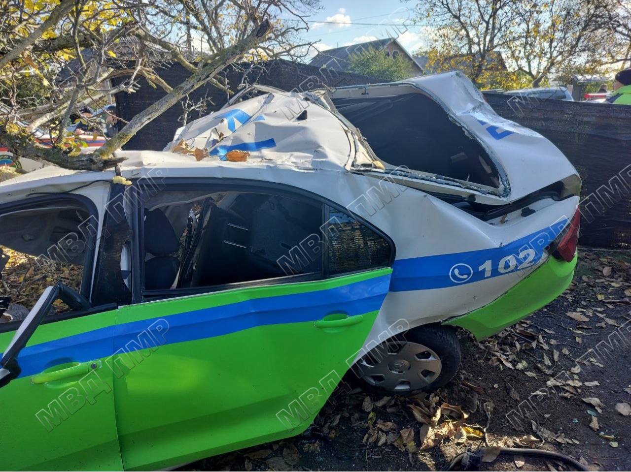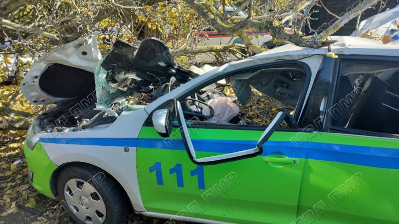 Un automobil de model Toyota ieșea de pe o stradă secundară. În imaginile video se vede cum mașina poliției încearcă să evite impactul, însă pe carosabilul alunecos autoturismul a derapat și s-a izbit de un copac.