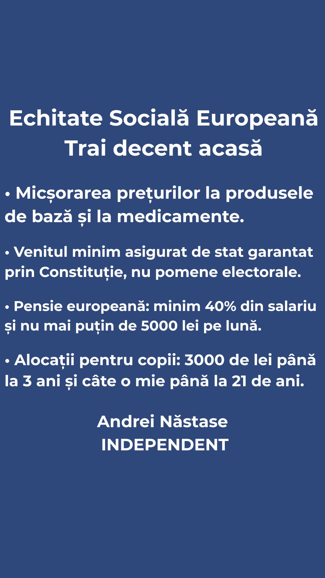 Venitul minim trebuie garantat permanent prin Constituție, nu prin pomeni electorale sau ocazionale. Pensionarii și oamenii simpli vor fi, prin vocea mea, în centrul politicilor statului, iar Constituția va fi garanția reală a unui trai decent”, a menționat Andrei Năstase.