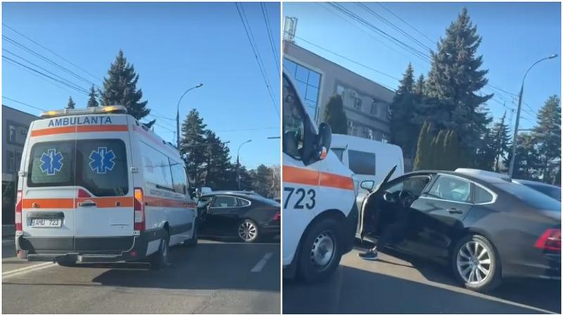 (video) O ambulanță și un Volvo s-au ciocnit la Botanica: Ambuteiaj infernal, pe Grenoble