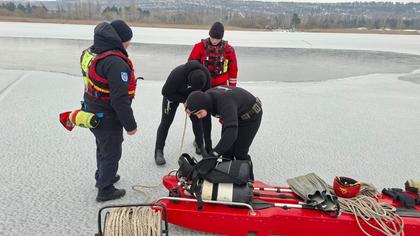 „Potrivit informațiilor recepționate la data de 16 februarie 2026, la ora 17:21, un cameraman amator, care efectua filmări cu drona deasupra lacului, a observat, la aproximativ 200 de metri de mal, un autoturism scufundat sub stratul de gheață și a alertat serviciile de urgență.