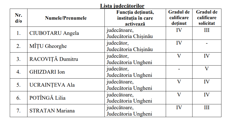 M a admis parțial demersurile privind acordarea gradului de calificare unor judecători.