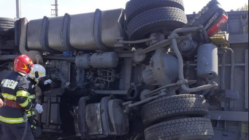 La sosirea echipajelor de intervenție a fost găsit un autocamion răsturnat, un sens de drum fiind blocat. Până la sosirea pompierilor, conducătorul auto s-a autoevacuat.