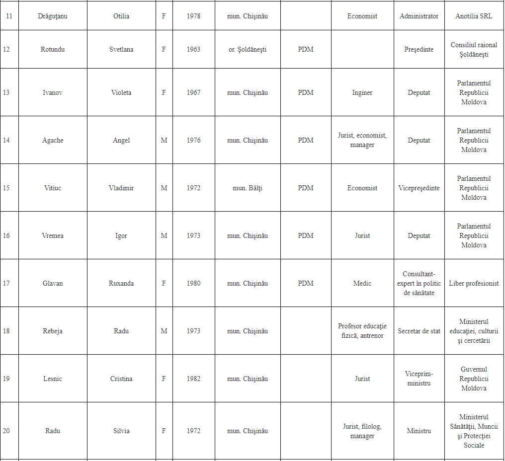 În listă se regăsește și Otilia Drăguțanu, soția fostului guvernator BNM, Dorin Drăguțanu.