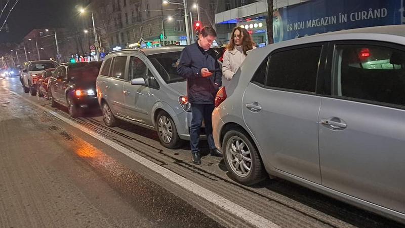 Un accident în lanț s-a produs în această seară, 1 martie, în centrul capitalei. Șase șoferi s-au ales cu mașinile avariate, după ce s-au lovit pe bulevardul Ștefan cel Mare. Imaginile video de la fața locului au fost publicate pe rețele de internauți.