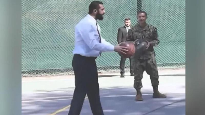 Al-Sharaa a fost filmat, duminică, în timp ce juca baschet alături de ministrul său de Externe, Asaad Al-Shaibani, și doi generali americani de rang înalt: amiralul Brad Cooper, comandantul CENTCOM, și generalul de brigadă Kevin Lambert, șeful operațiunii anti-ISIS.
