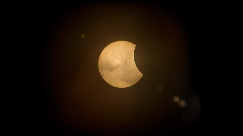 În Eclipsa Parțială, Luna acoperă doar o porțiune din Soare și îl va face să arate precum o mușcătură dintr-un măr.