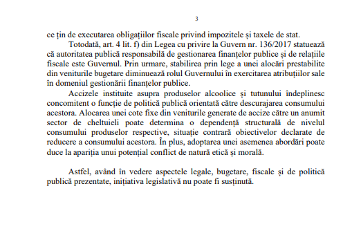 Astfel, având în vedere aspectele legale, bugetare, fiscale și de politică publică prezentate, inițiativa legislativă nu poate fi susținută”, se menționează în motivarea Ministeruluin Finanțelor.