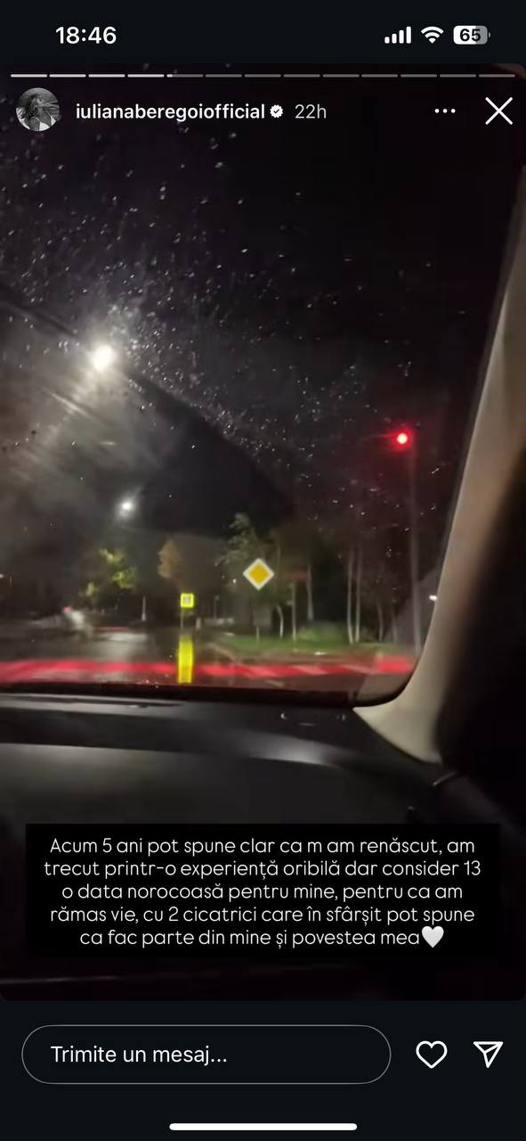 Acum cinci ani pot spune clar că m-am renăscut, am trecut printr-o experiență oribilă, dar consider data de 13 una norocoasă pentru mine, pentru că am rămas vie”, a scris Iuliana pe rețele.