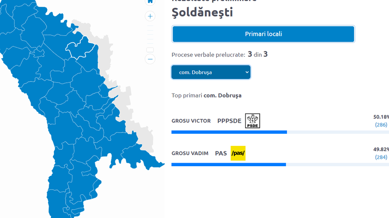 Vadim Grosu a pierdut alegerile, cu două voturi diferență, în favoarea candidatului PSDE, Victor Grosu.