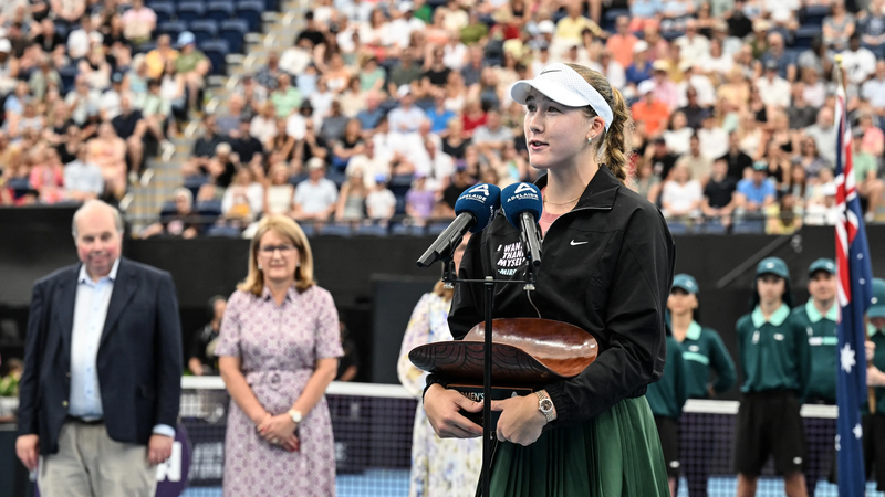 Andreeva a purtat jacheta după ce a învins-o în finala de la Adelaide pe jucătoarea canadiană Victoria Mboko, scor 6-3 6-1 și, ca de obicei, a spus: „Îmi mulțumesc mie însămi”.