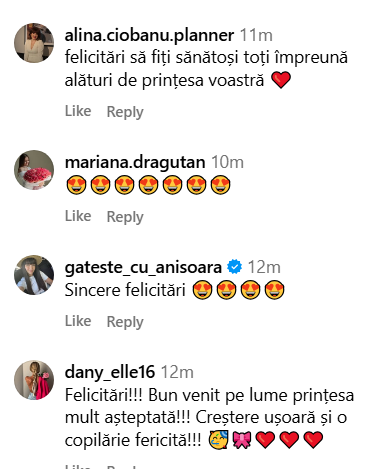 „Felicitări, să fiți sănătoși toți împreună alături de prințesa voastră”;