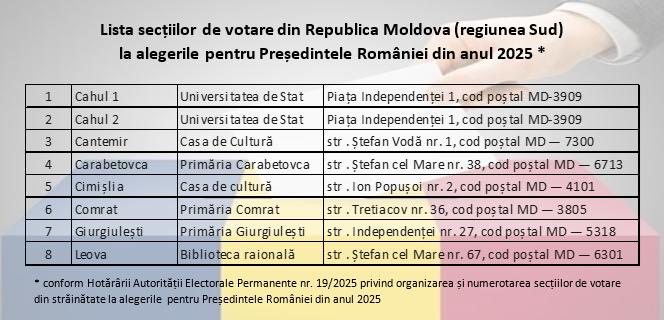 - în regiunea sud - 8 secții de votare.
