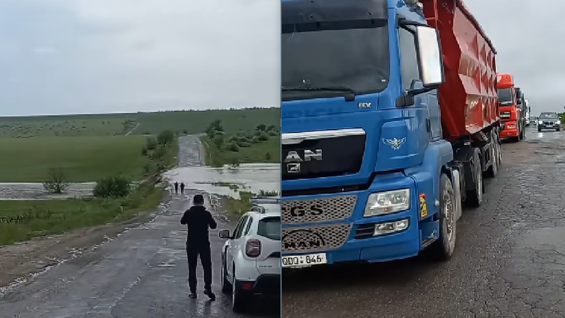 Potrivit imaginilor video, mai multe TIR-uri au fost nevoite să se oprească din drum.