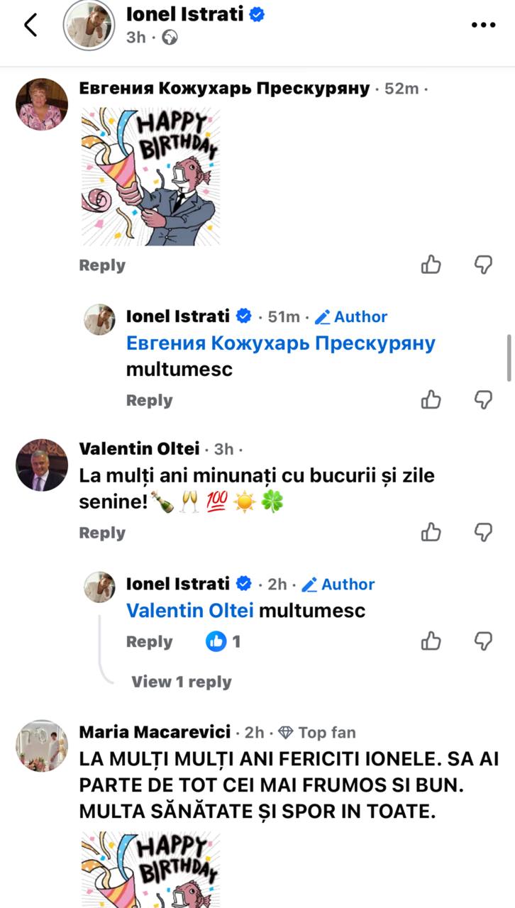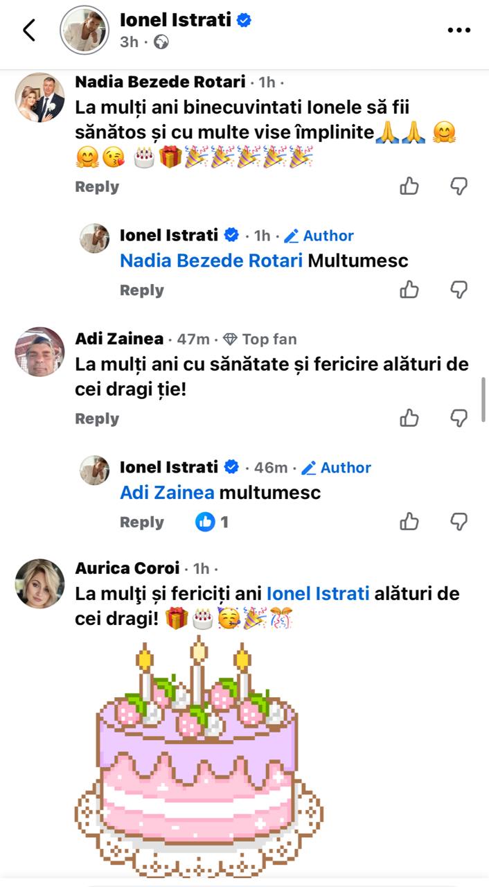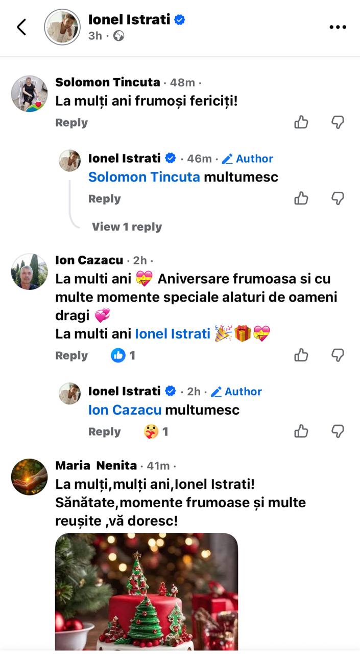 „La mulți, mulți ani, Ionel Istrati”. Sănătate, momente frumoase și multe reușite vă doresc”, i-au urat internauții.