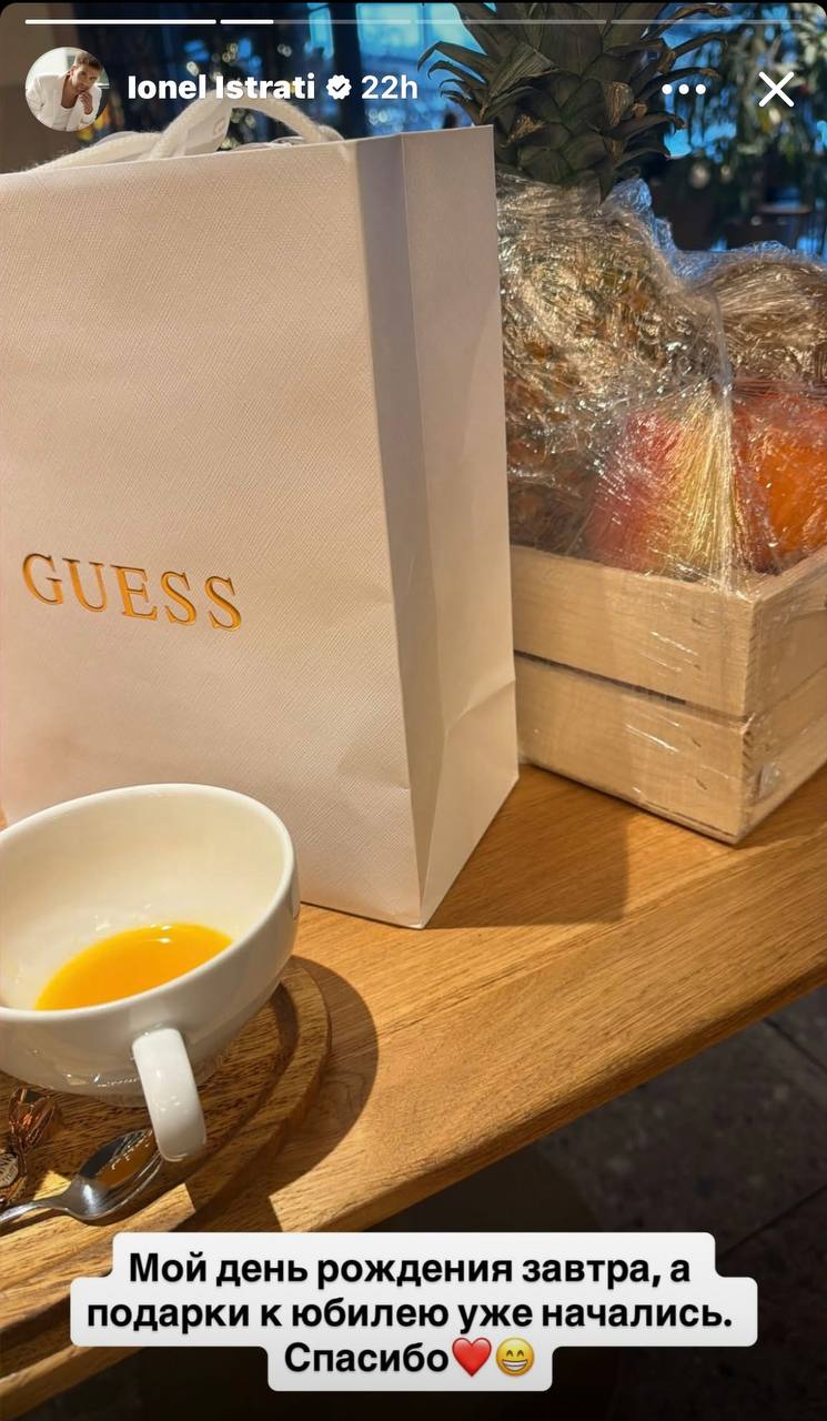 Interpretul a primit aseară un cadou de la Guess, precum și o ladă cu fructe.