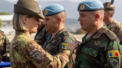 În prezenţa superiorului Comandamentului Regional Vest (Regional Command-West), colonel Mario Bozzi, precum şi a pacificatorilor din Italia, Austria, Albania, Macedonia de Nord și România, maiorul Andrei Cotilevschi, comandantul KFOR-18, a predat drapelul și responsabilitățile funcției maiorului Vsevolod Serdiuc, care urmează să ocupe acest post în următoarele șase luni.