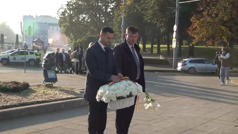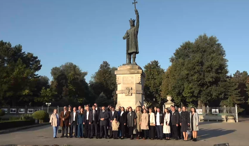 Angajații Primăriei, în frunte cu viceprimarul Ilie Ceban și secretarul general Adrian Talmaci, au parcurs pe jos drumul de la sediul Primăriei până la monumentul lui Ștefan cel Mare, unde au depus buchetele de flori.