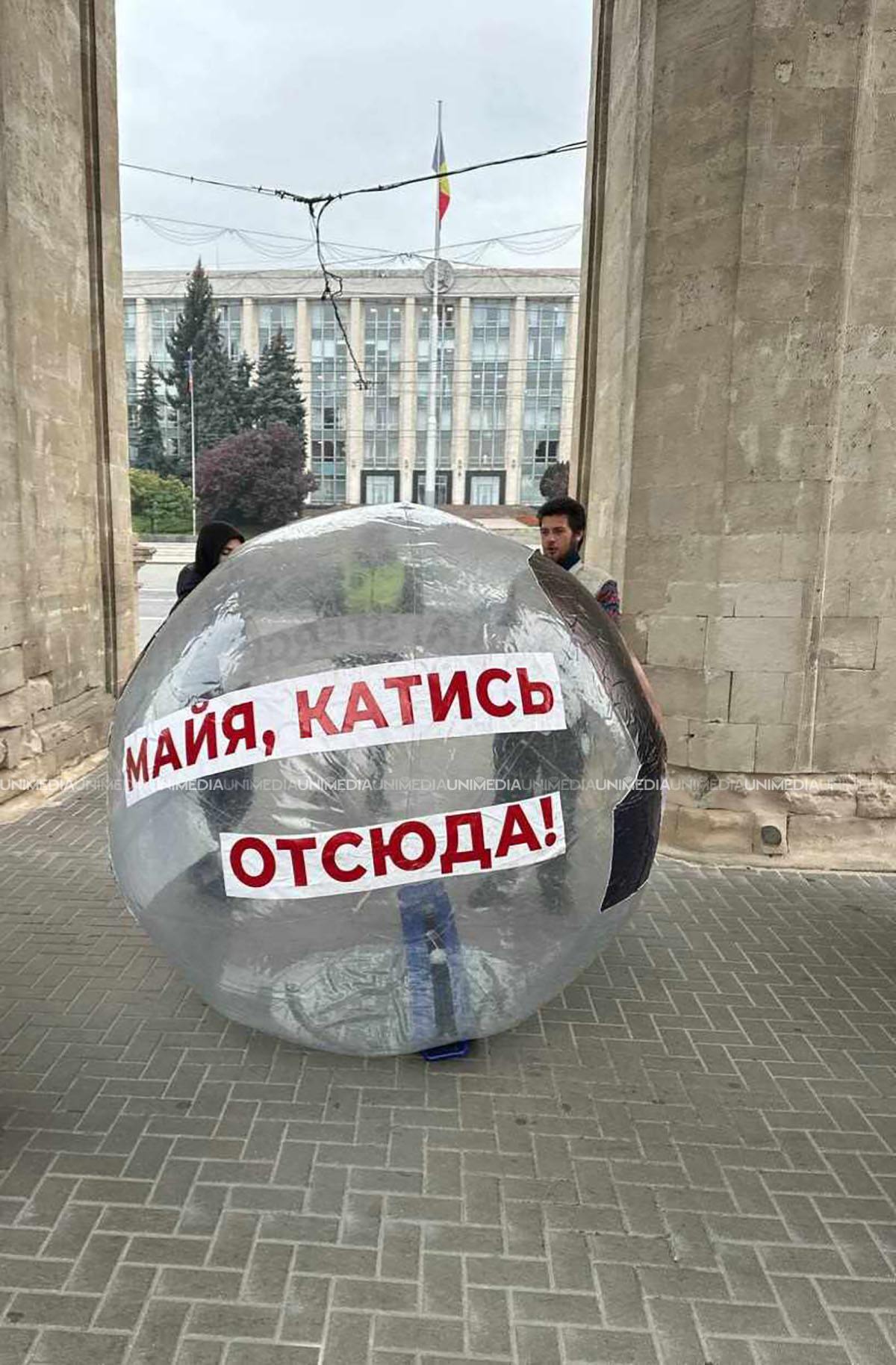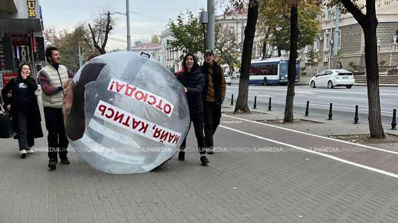 Mai mulți tineri au organizat, în această dimineață, un protest în centrul capitalei împotriva președintei Maiei Sandu. Aceștia au rostogolit pe străzi un balon gonflabil cu imaginea șefei statului, cu inscripția „Maia, şterge-o de aici”.