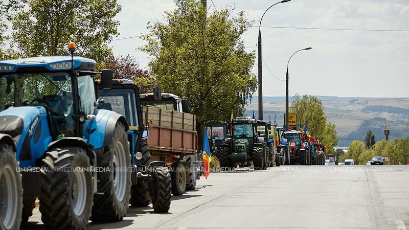 Fermierii au mărșăluit cu tractoarele pe bulevardul Ștefan cel Mare, claxonând continuu. Traficul din centrul capitalei a fost aproape paralizat, însă nu blocat complet.