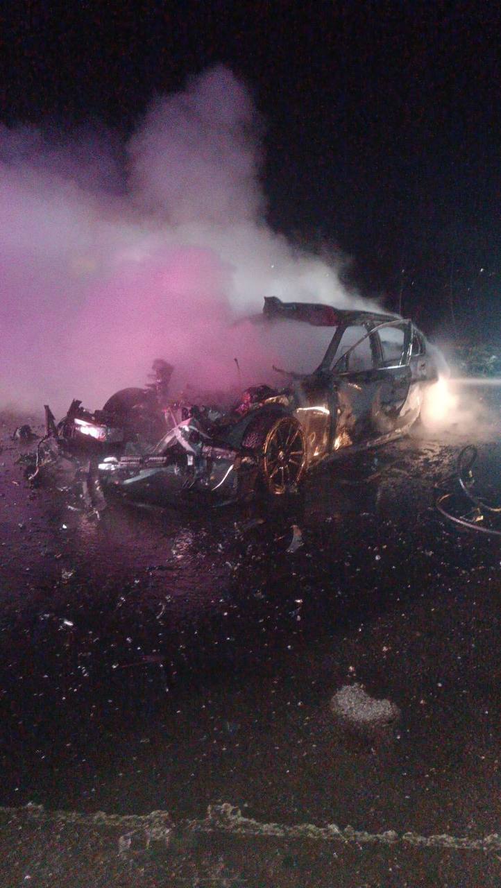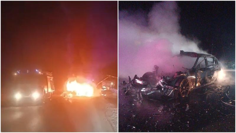 Un incendiu a izbucnit în automobilul care s-a tamponat cu un tractor, care ar fi circulat cu farurile stinse.