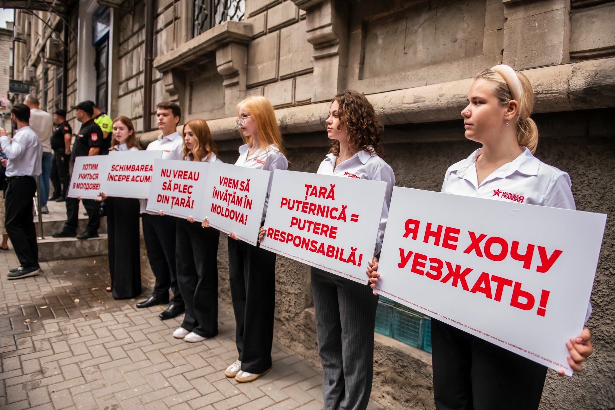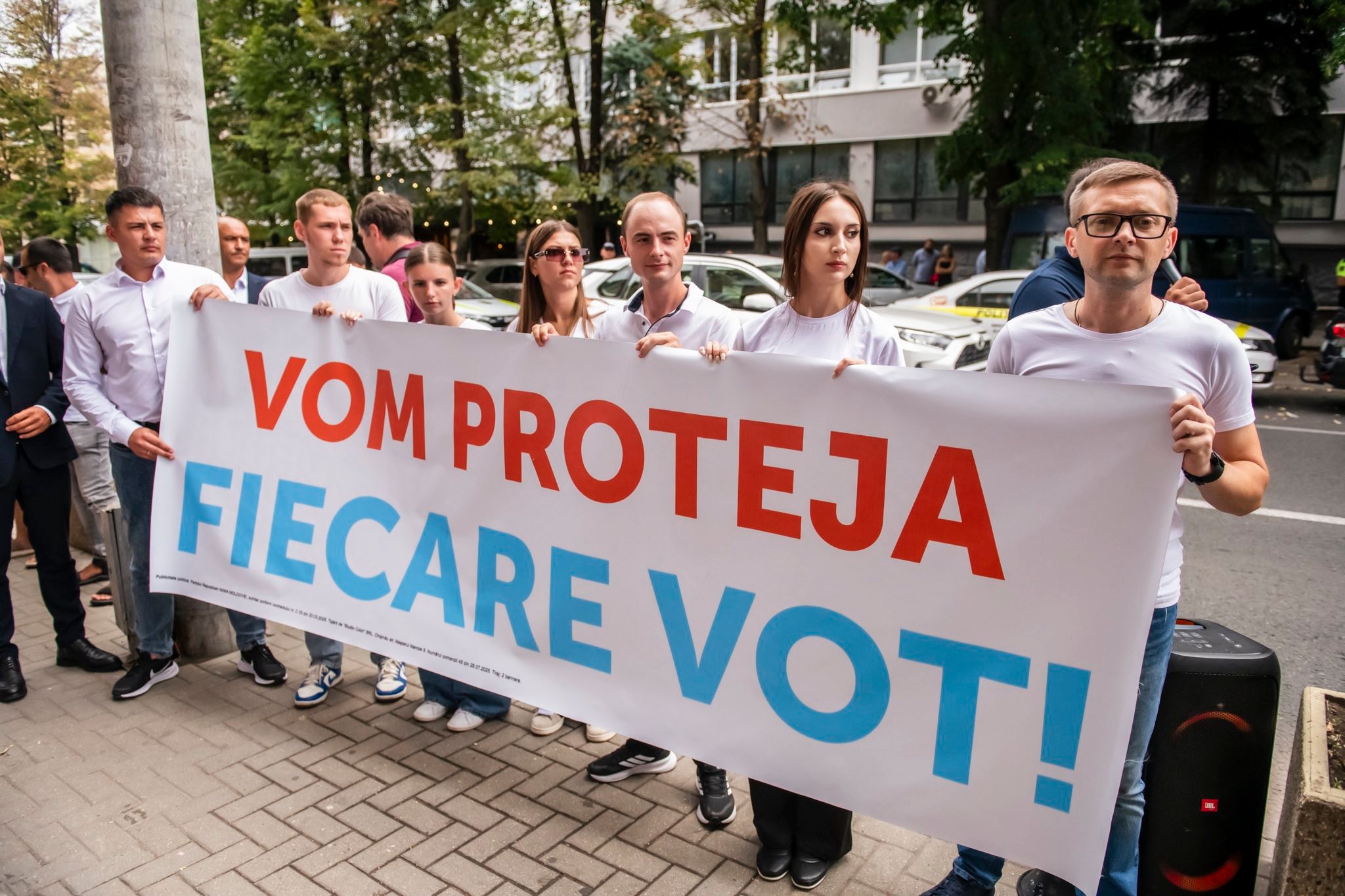 Liderii celor trei formațiuni au fost întâmpinați la ușa CEC de tinerii manifestanți, care scandează: „Împreună pentru țară! Moldova!”, „Moldova - stat suveran!”, „Moldova are viitor!”, „Pentru oameni, pentru țară!”, „Patrioții la putere!”.
