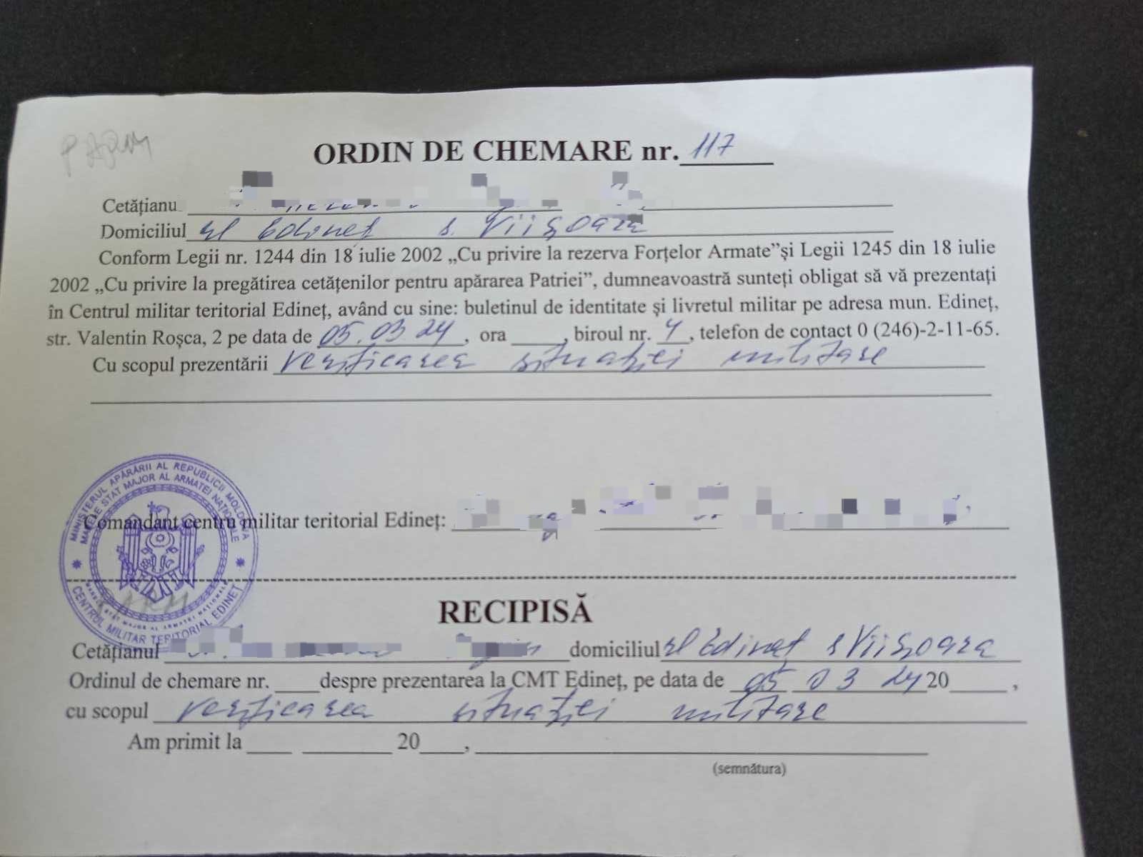 În cazul în care aveți întrebări referitor la aceste citații, contactați CMT-ul sau SAM-ul la numărul indicat în ordinul de chemare sau la Linia instituțională pentru informare a Ministerului Apărării (022 252 009).