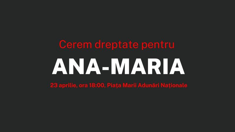 Astăzi, la ora 18:00, vom merge în Piața Marii Adunări Națională (în fața Guvernului) ca să cerem dreptate pentru Ana-Maria. Vom cere să fim auzite și să ne fie auzite strigătele comune pentru Ana-Maria, pentru copilul ei și pentru toate femeile care nu-și mai pot striga durerea și cere dreptatea. Vino și tu! Alătură-te vocilor noastre”, se arată în mesajul Coaliției Naționale „Viața fără Violență”