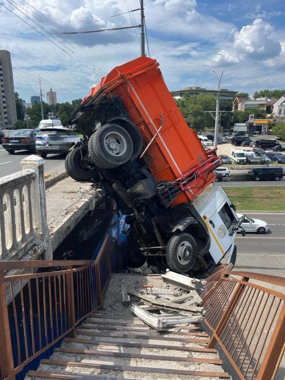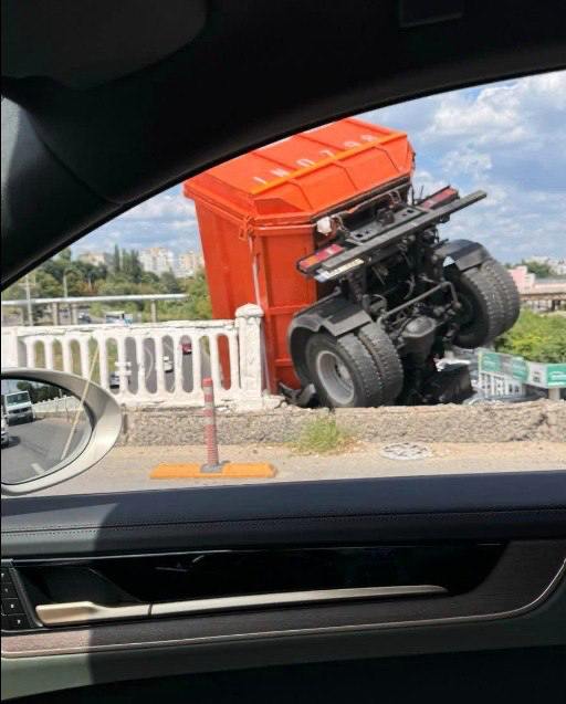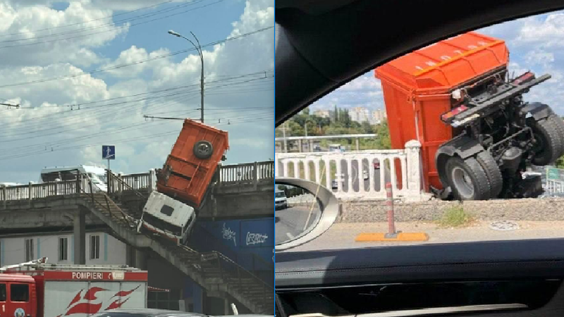 Din imaginile publicate pe rețelele de socializare se observă cum un camion a trecut de balustrada podului și e pe cale să se prăbușească în gol. Șoferul și pasagerul au ieșit din cabina răsturnată. Potrivit internauților, în preajmă s-au format ambuteiaje infernale.