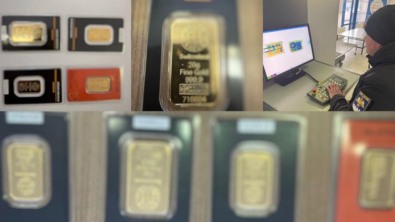 În urma controlului detaliat, realizat inclusiv cu tehnica de scanare din dotarea Serviciului Vamal, asupra uneia dintre valize au apărut suspiciuni. La verificarea fizică, printre articolele vestimentare au fost depistate 6 lingouri din metal auriu, de diferite dimensiuni, marcate cu inscripția „FINE GOLD”, presupuse a fi din aur.