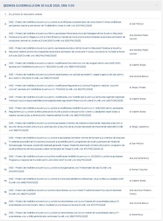 (update) Proiectul de hotărâre a Guvernului pentru modificarea unor hotărâri ale Guvernului (atribuirea Agenției Naționale Transport Auto a responsabilității privind gestionarea siguranței infrastructurii rutiere) (număr unic 425/MIDR/2025) și proiectul de hotărâre a Guvernului cu privire la modificarea Hotărârii Guvernului nr. 326/2022 pentru aprobarea Regulamentului cu privire la efectuarea pe drumurile publice a transporturilor rutiere cu depășirea masei totale, a maselor pe axe și/sau a dimensiunilor maxime admise (număr unic 480/MIDR/2025), susținute de miniștri.