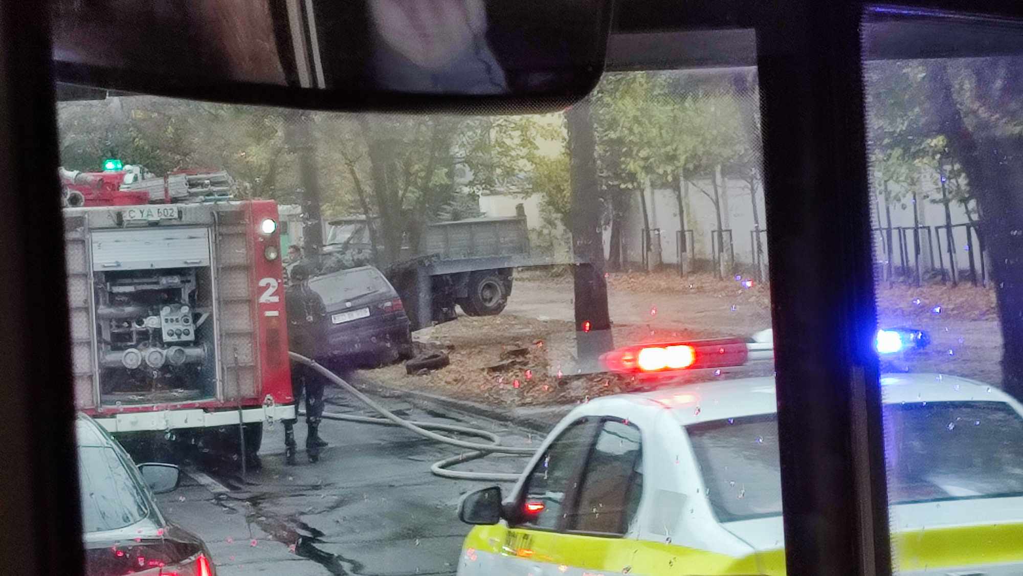 Dimineață de foc pentru un șofer din capitală. Mașina cu care se deplasa a fost cuprinsă de flăcări, în plin trafic, pe strada Miorița. La fața locului au intervenit pompierii și poliția.