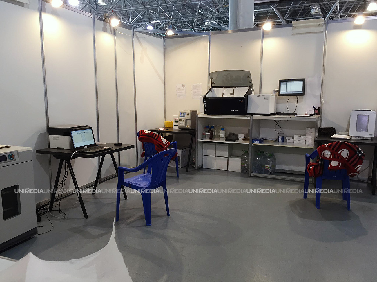 Centrul este dotat cu un laborator medical, dispozitive radiologice și aparat de ultrasonografie. Astfel pacienții internați beneficiază de investigații pe loc, ceea ce permite stabilirea diagnosticului mai rapid și inițierea promptă a tratamentului. Probele pentru testele Covid-19 sunt prelevate în incinta Centrului Covid și apoi transferate la laboratorul central al ANSP. Rezultatele vin la 08:00, apoi la ora 14:00, după care după ora 17:00. Totul depinde de ora în care a fost adus pacientul. Dacă acesta e adus după ora 14:00, rezultatul lui vine a doua zi la ora 08:00.
