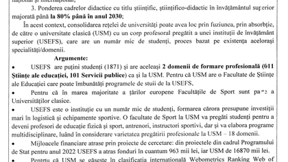 Pe 27 iunie 2022, fostul ministru al Educației, Anatolie Topală, a anunțat despre „începerea celui mai important proces de modernizare a universităților și a sistemului de cercetare din Republica Moldova din ultimii ani”, care urma să includă reorganizarea prin absorbție a mai multor instituții de învățământ superior. Colectivul Universității de Stat de Educație Fizică și Sport și comunitatea sportivă din Republica Moldova au adresat o scrisoare deschisă autorităților din țară, în care cereau „de urgență, stoparea procesului de absorbție” a instituției.