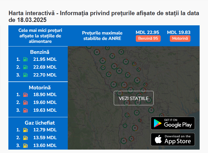Astfel, pentru un litru de benzină șoferii vor plăti 22,92 lei, iar pentru un litru de motorină - 19,73.