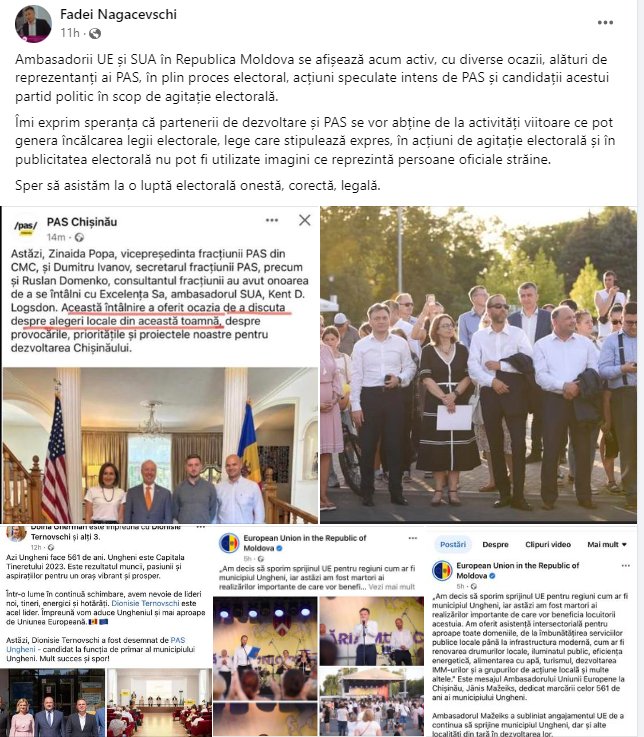 „Îmi exprim speranța că partenerii de dezvoltare și PAS se vor abține de la activități viitoare ce pot genera încălcarea legii electorale, lege care stipulează expres: în acțiuni de agitație electorală și în publicitatea electorală nu pot fi utilizate imagini ce reprezintă persoane oficiale străine.