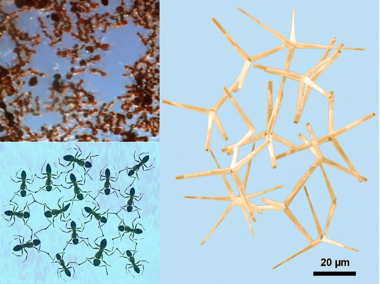 Merită menționat că auto-organizarea și interacțiunea elementelor tetrapodice la formarea membranelor de aero-GaN pe apă se aseamănă mult cu gruparea și interacțiunea furnicilor de foc în procesul de creare a unei „plute vii” cu scopul de a supraviețui la inundații.