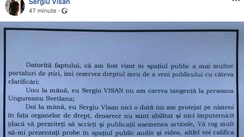 Declarația omului de afaceri, Sergiu Visan / Sursa:Sergiu Visan via FacebookAmintim că în această dimineață, portalul Actualitati.md a publicat o știre prin care spunea că omul de afaceri ar fi fost cel care o proteja pe șoferița care a provocat tragicul accident de la Buiucani. Informația însă nu a fost confirmată, iar Visan neagă categoric orice legătură cu femeia.