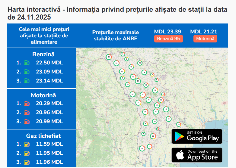 Astfel, potrivit ANRE, prețul maxim de referință, stabilit la data de 24.11.2025 aplicabil pentru data de 25.11.2025, este: