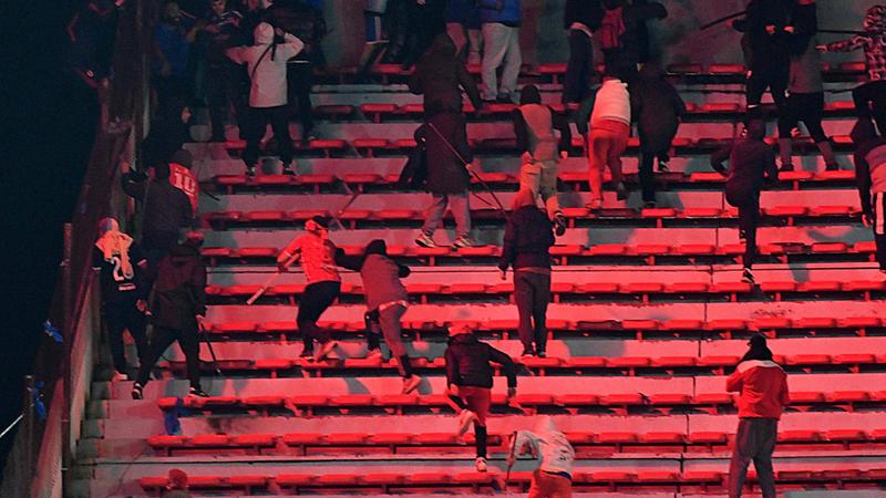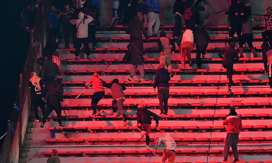 Incidentele au început când fanii chilieni, aflaţi într-o tribună superioară, au aruncat proiectile, inclusiv scaune şi o bombă artizanală, asupra fanilor argentinieni, care apoi le-au aruncat înapoi, a observat un jurnalist AFP. Mulţi fani argentinieni, unii cu bâte în mâini, i-au atacat violent pe fanii chilieni, iar serviciile de securitate nu au intervenit.