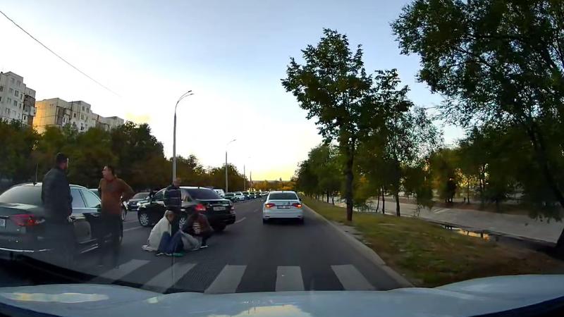 Imaginile au fost publicate pe rețele. Potrivit acestora, pietonul zace la pământ, dar este în viață.