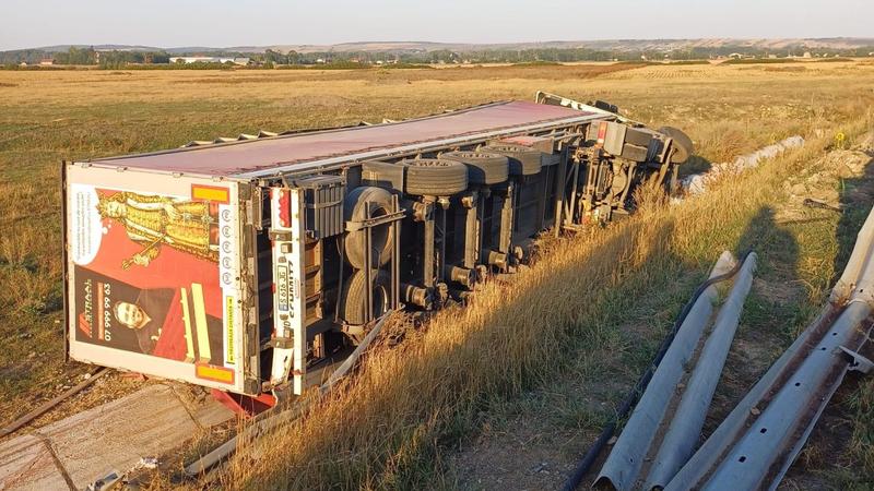 În cele din urmă TIR-ul s-a răsturnat într-un canal de scurgere a apelor pluviale.