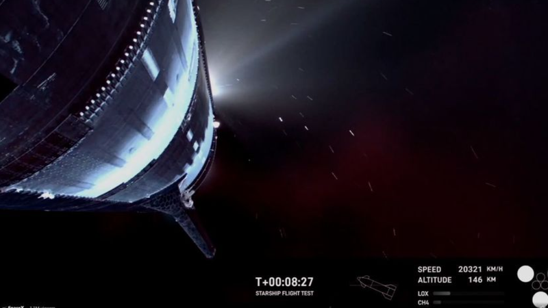 Mai multe videoclipuri de pe reţelele sociale au arătat resturi străbătând cerul în amurg, în apropiere de sudul Floridei şi de Bahamas, după dezintegrarea Starship în spaţiu, care a avut loc în timp ce, potrivit transmisiunii live, se prăbuşea necontrolat.