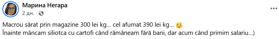 Înainte mâncam „siliotcă” cu cartofi când rămâneam fără bani, dar acum când primim salariu…”, se arată într-un comentariu.
