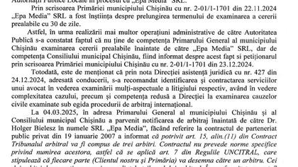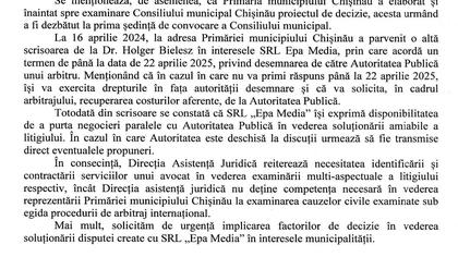 Totodată, din corespondența oficială, Epa Media este dispusă să negocieze o tranzacție de împăcare pentru a-și retrage pretențiile juridice în raport cu Primăria mun. Chișinău.